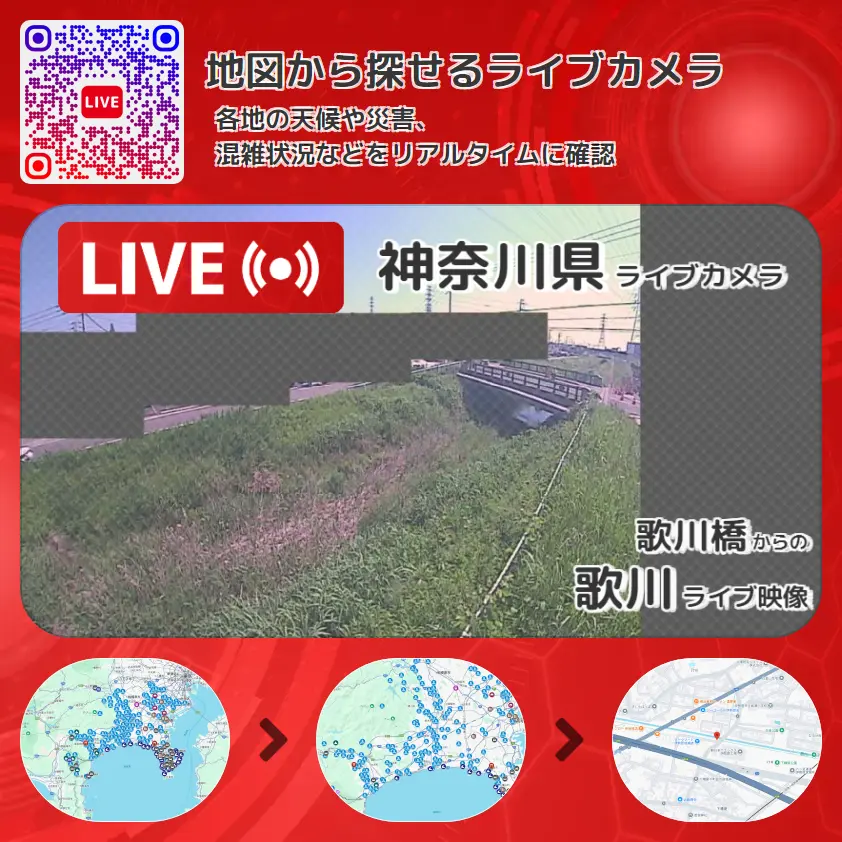 歌川の他に、歌川橋や周辺の気象状況も併せてチェックすることが可能で、台風・大雨・地震などの災害による被害状況も把握することができます。