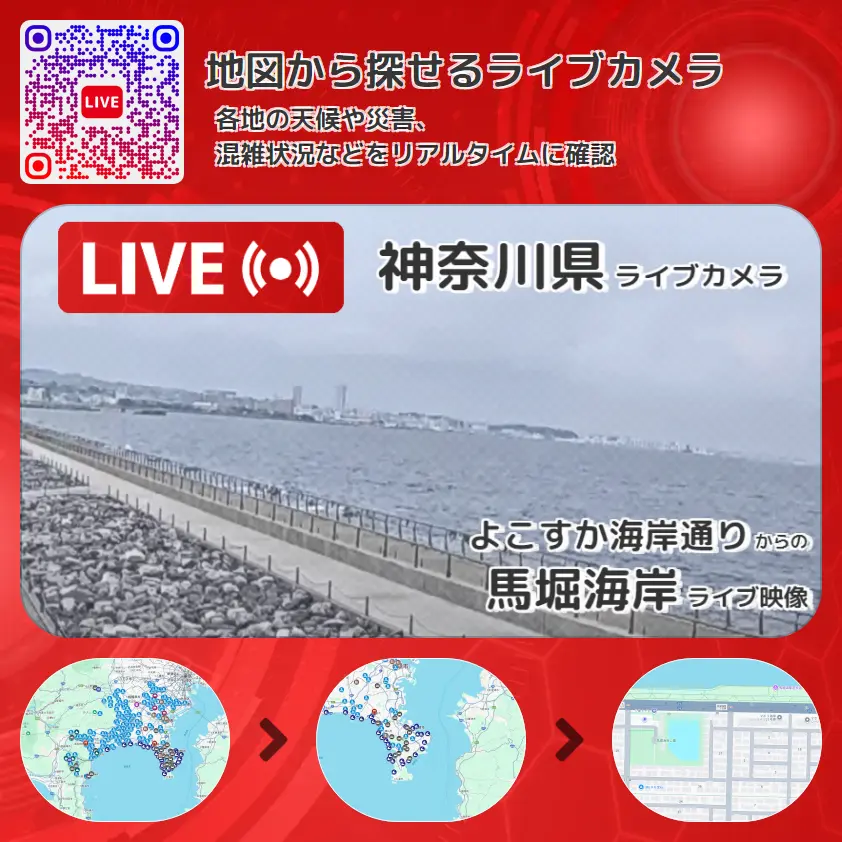 よこすか海岸通りから、馬堀海岸が確認できるライブカメラです。