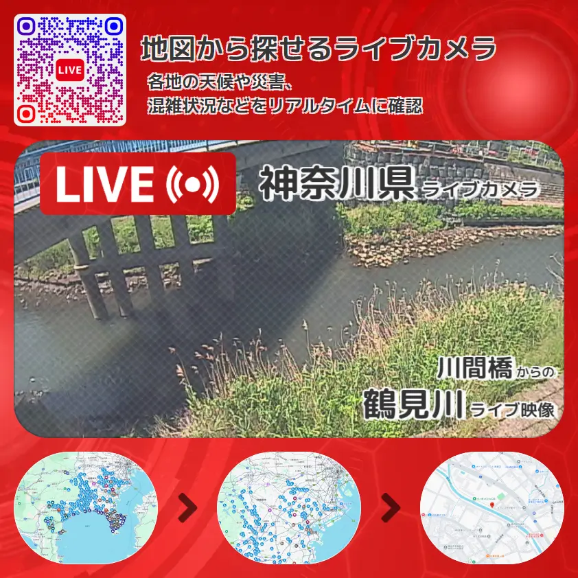 神奈川県 「鶴見川」ライブ映像(川間橋 設置カメラ) ライブカメラ 監視カメラ