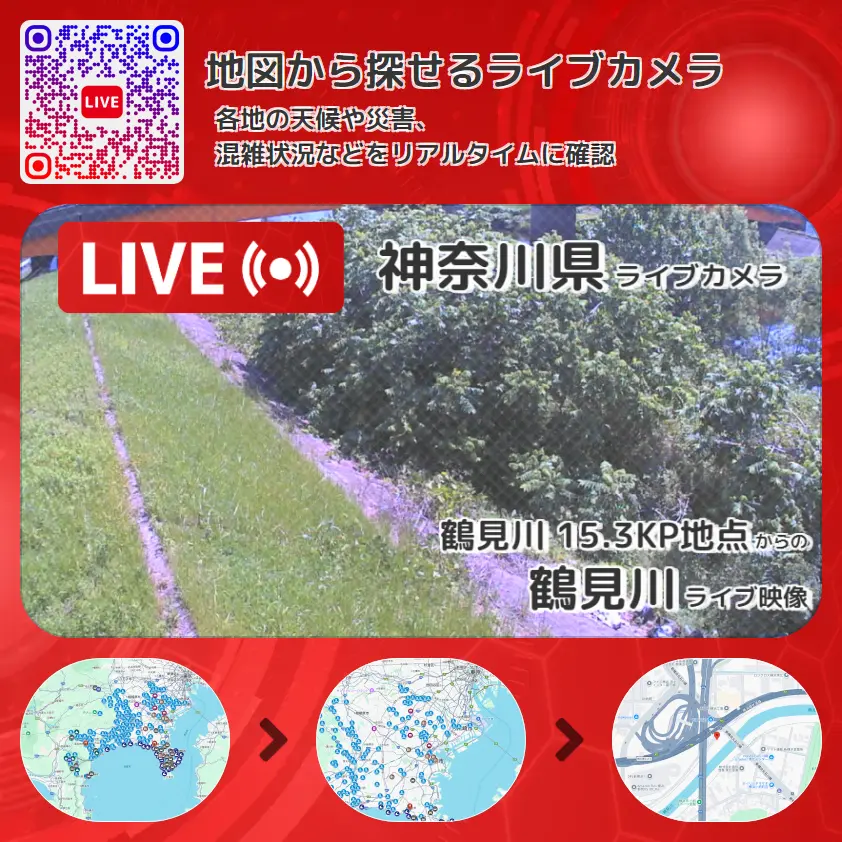 「鶴見川」ライブ映像(鶴見川 15.3KP地点 設置カメラ)