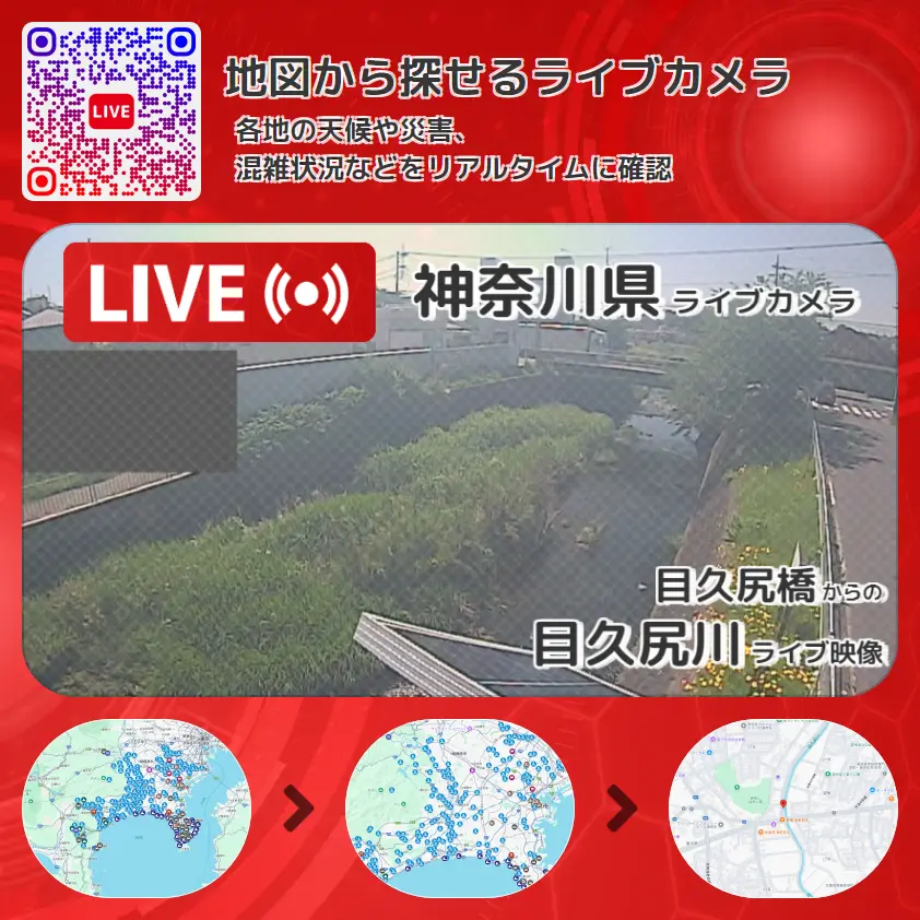 目久尻橋から、目久尻川が確認できるライブカメラです。