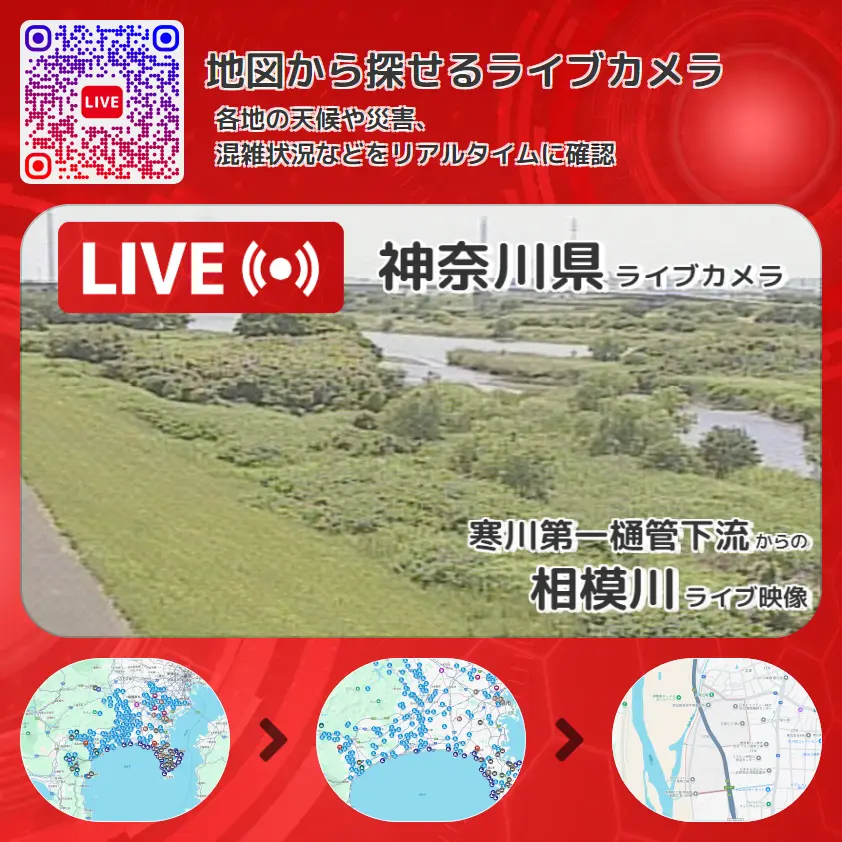 寒川第一樋管下流(河口より5.2km)から、相模川が確認できるライブカメラです。