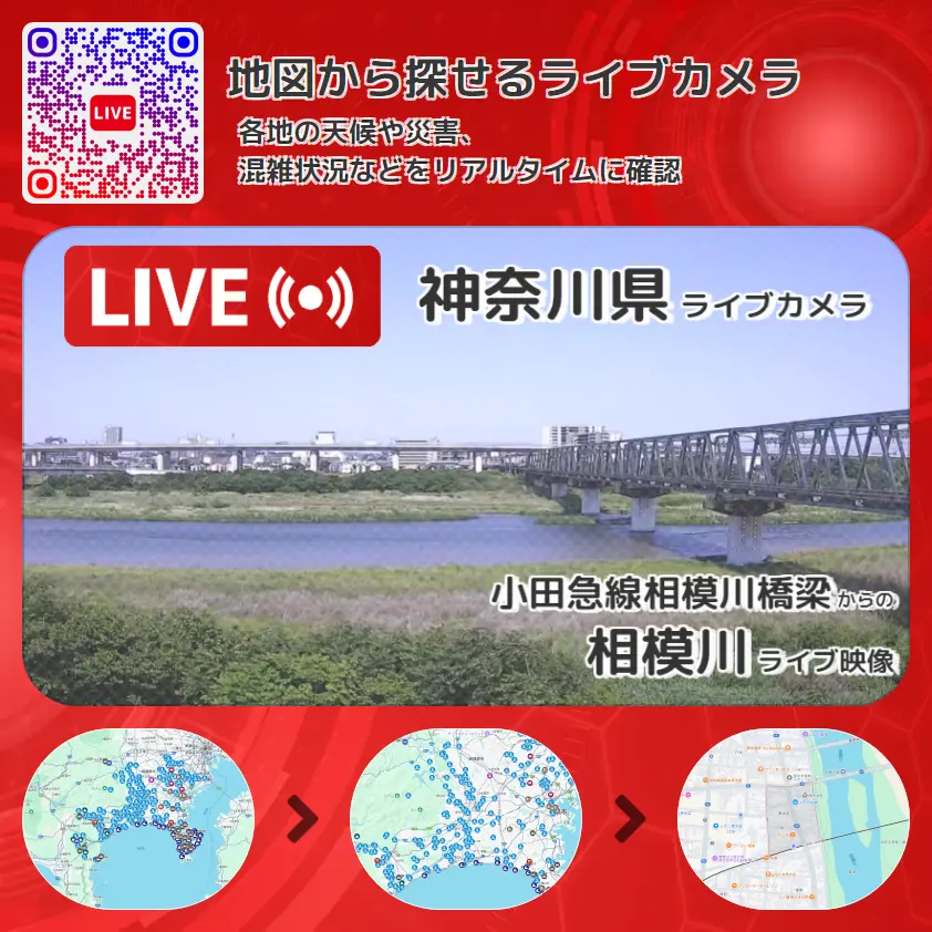 小田急線相模川橋梁から、相模川が確認できるライブカメラです。
