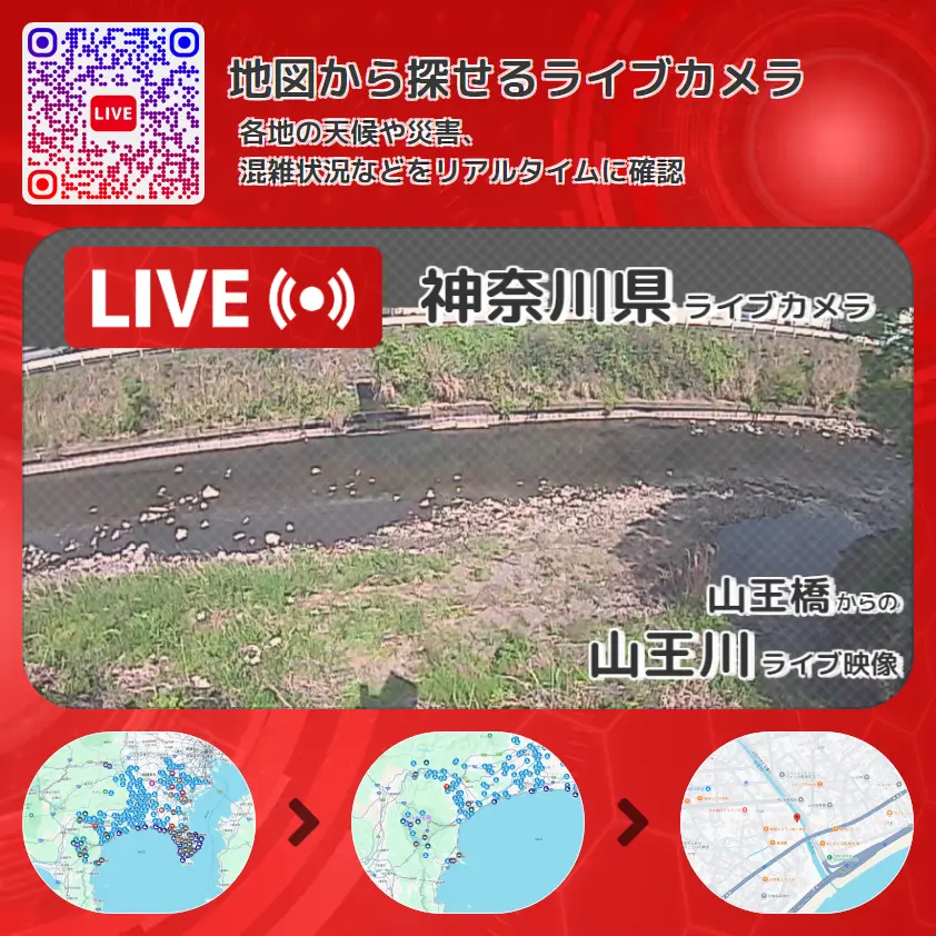 山王川の他に、山王川さくら通りや周辺の気象状況も併せてチェックすることが可能で、台風・大雨・地震などの災害による被害状況も把握することができます。