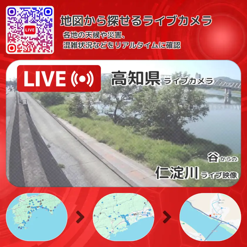 仁淀川の他に、仁淀川橋や周辺の気象状況も併せてチェックすることが可能で、台風・大雨・地震などの災害による被害状況も把握することができます。