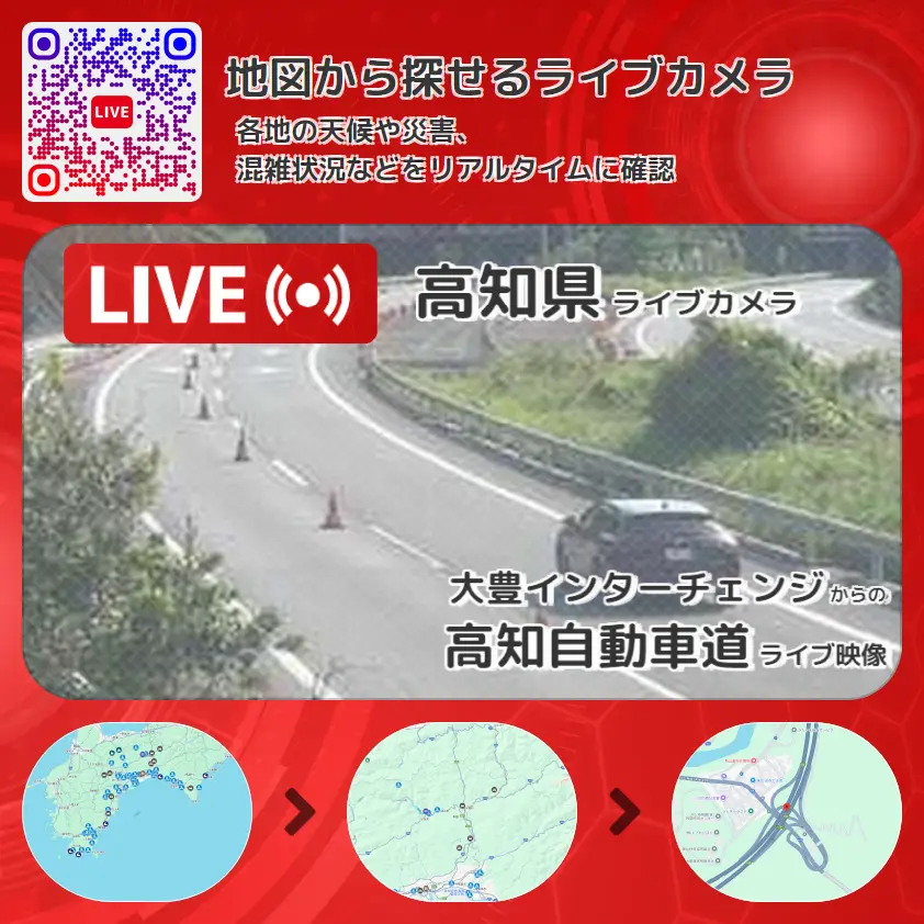 大豊インターチェンジ(大豊IC)付近から、高知自動車道(高知道)が確認できるライブカメラです。