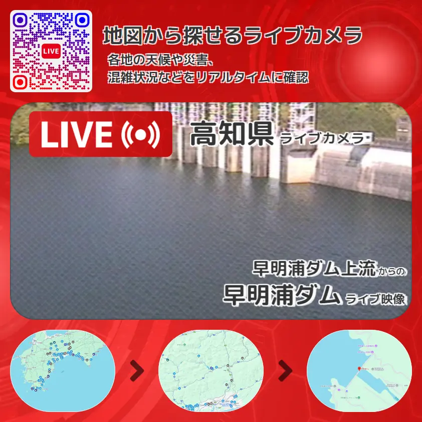早明浦ダムの他に、早明浦湖や周辺の気象状況も併せてチェックすることが可能で、台風・大雨・地震などの災害による被害状況も把握することができます。