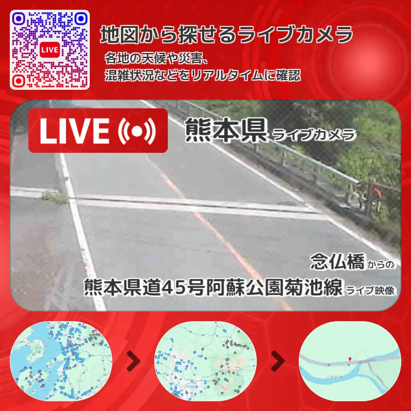 念仏橋から、熊本県道45号阿蘇公園菊池線が確認できるライブカメラです。