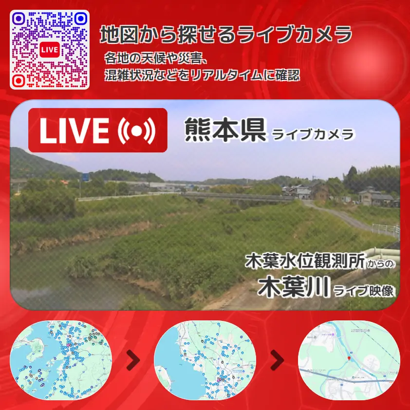 熊本県 「木葉川」ライブ映像(木葉水位観測所 設置カメラ) ライブカメラ 監視カメラ