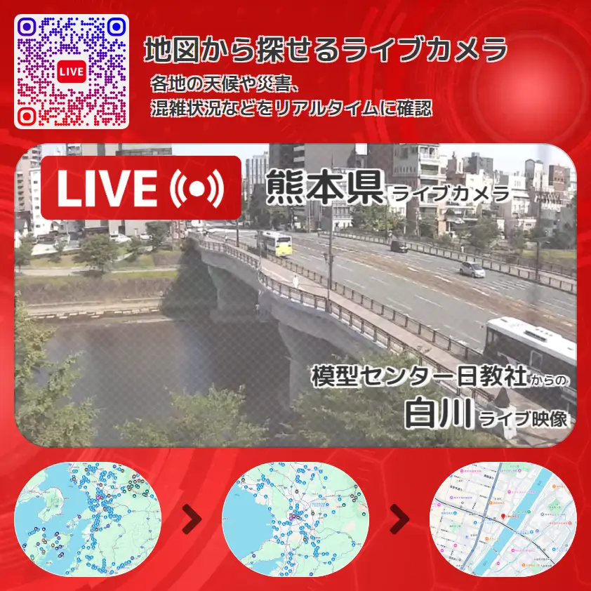 白川の他に、大甲橋や周辺の気象状況も併せてチェックすることが可能で、台風・大雨・地震などの災害による被害状況も把握することができます。