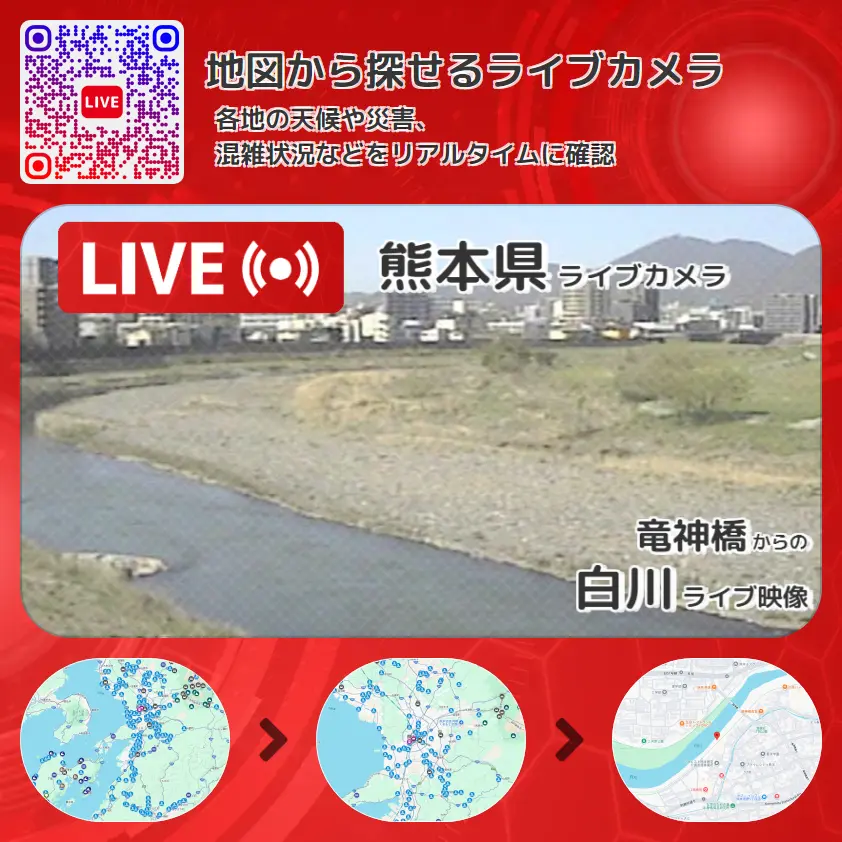 熊本県 「白川」ライブ映像(竜神橋 設置カメラ) ライブカメラ 監視カメラ