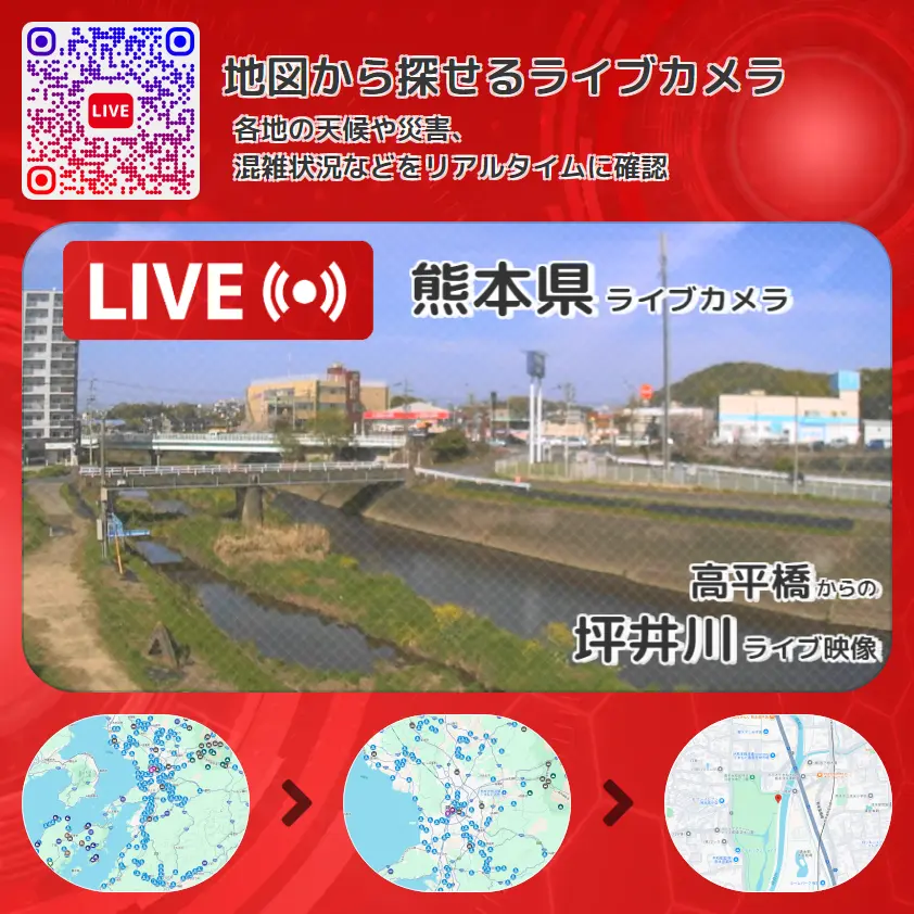 坪井川の他に、高平橋や周辺の気象状況も併せてチェックすることが可能で、台風・大雨・地震などの災害による被害状況も把握することができます。