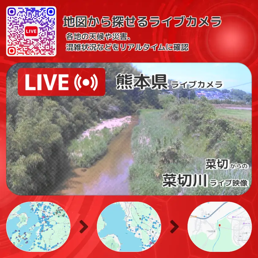 周辺の気象状況も併せてチェックすることが可能で、台風・大雨・地震などの災害による被害状況も把握することができます。