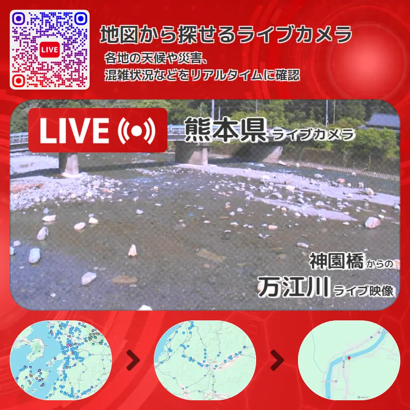 熊本県 「万江川」ライブ映像(神園橋 設置カメラ) ライブカメラ 監視カメラ