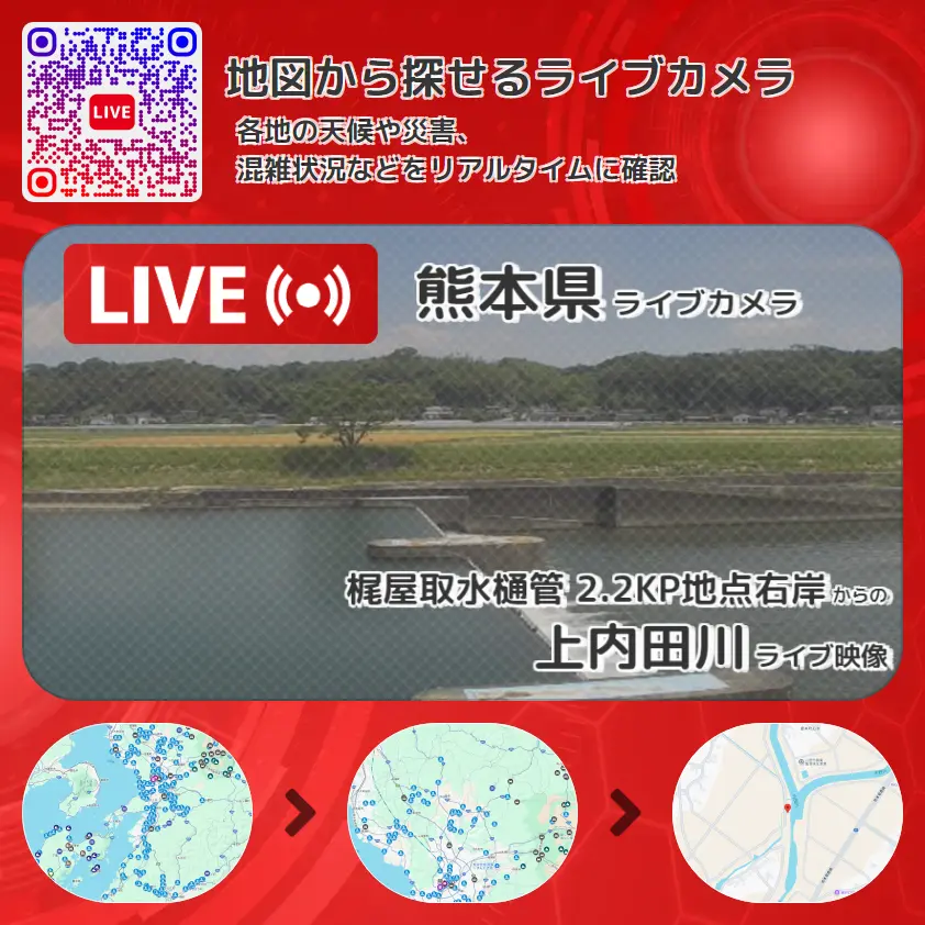 熊本県 「上内田川」ライブ映像(梶屋取水樋管 2.2KP地点右岸 設置カメラ) ライブカメラ 監視カメラ