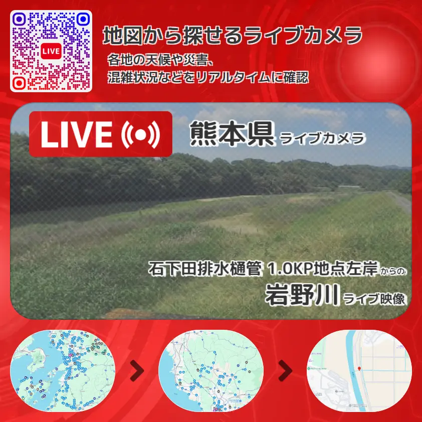 周辺の気象状況も併せてチェックすることが可能で、台風・大雨・地震などの災害による被害状況も把握することができます。
