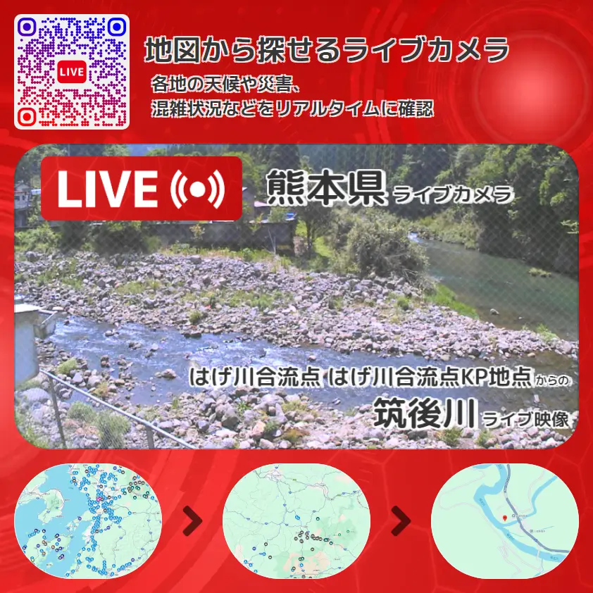はげ川合流点 はげ川合流点KP地点から、筑後川が確認できるライブカメラです。