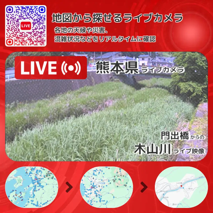 木山川の他に、門出橋や周辺の気象状況も併せてチェックすることが可能で、台風・大雨・地震などの災害による被害状況も把握することができます。