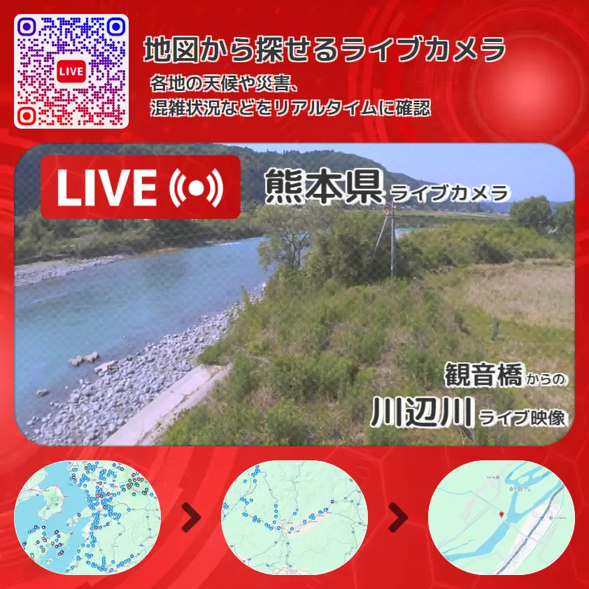 熊本県 「川辺川」ライブ映像(観音橋 設置カメラ) ライブカメラ 監視カメラ