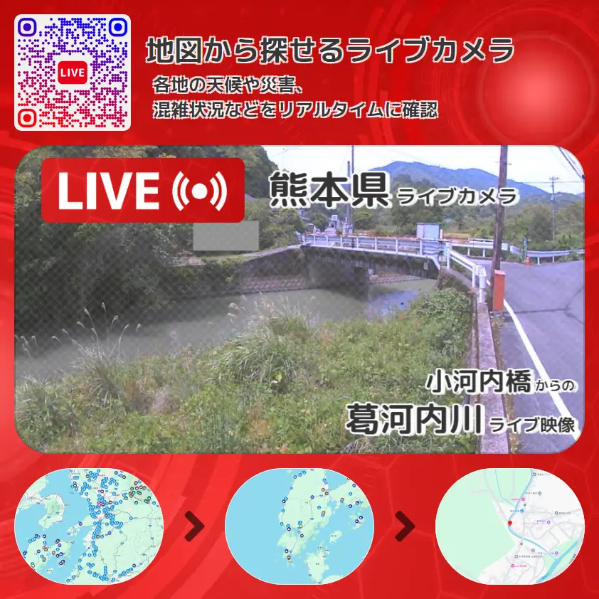 熊本県 「葛河内川」ライブ映像(小河内橋 設置カメラ) ライブカメラ 監視カメラ