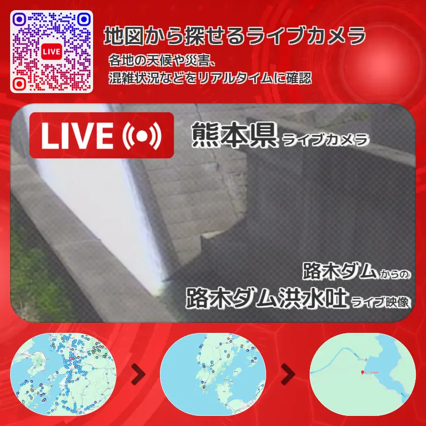 熊本県 「路木ダム洪水吐」ライブ映像(路木ダム 設置カメラ) ライブカメラ 監視カメラ