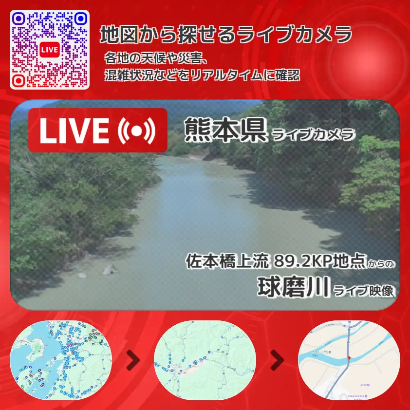 佐本橋上流 89.2KP地点から、球磨川が確認できるライブカメラです。