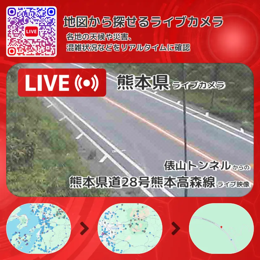 俵山トンネルから、熊本県道28号熊本高森線が確認できるライブカメラです。