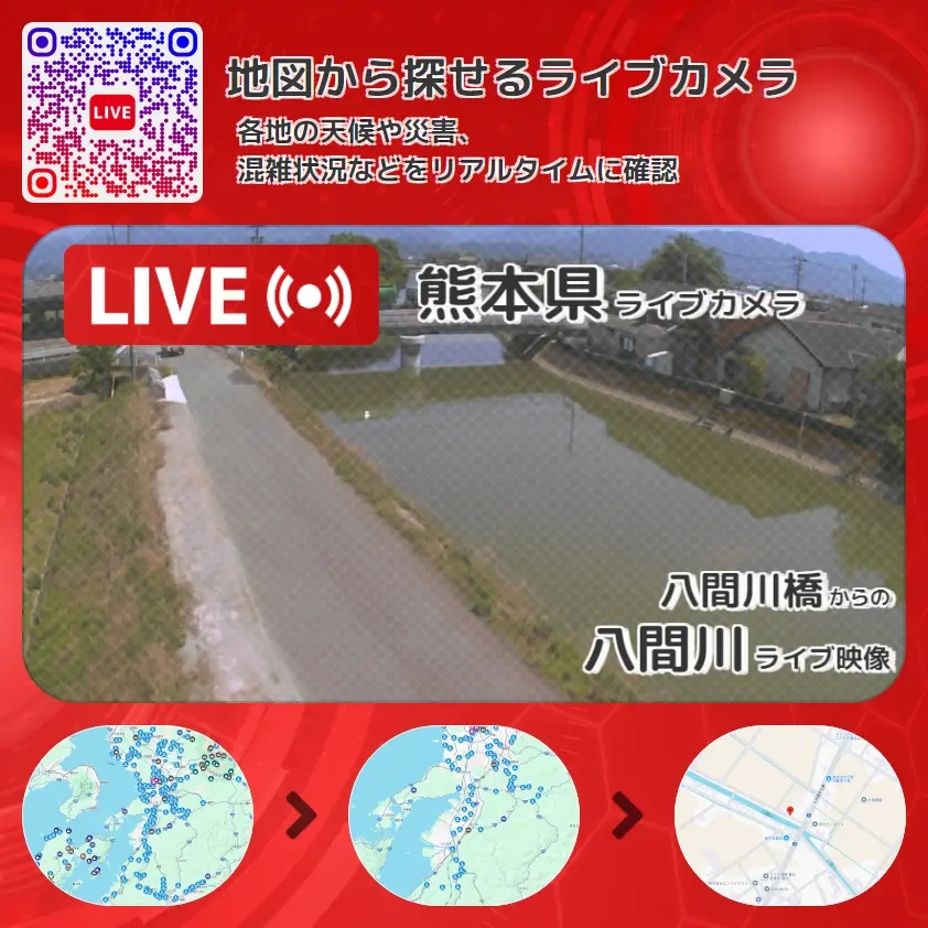 八間川の他に、八間川橋や周辺の気象状況も併せてチェックすることが可能で、台風・大雨・地震などの災害による被害状況も把握することができます。