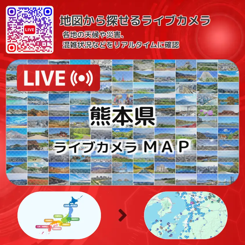 熊本県のライブカメラMAP 熊本県 X Facebook はてブ LINE コピー 2025.11.082025.11.09 リンク GoogleMapの地点一覧は測地系の影響により、地図上のマークが示す地点はおおよその場所になります。正確な位置は各地点の詳細ページをご確認ください。リンク