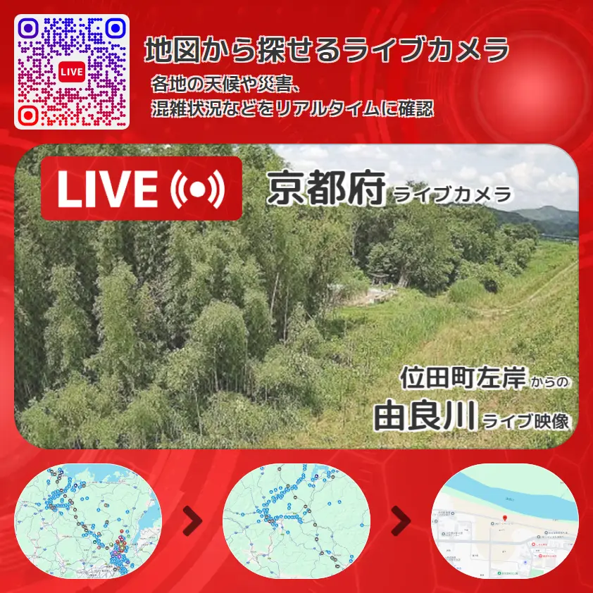 周辺の気象状況も併せてチェックすることが可能で、台風・大雨・地震などの災害による被害状況も把握することができます。