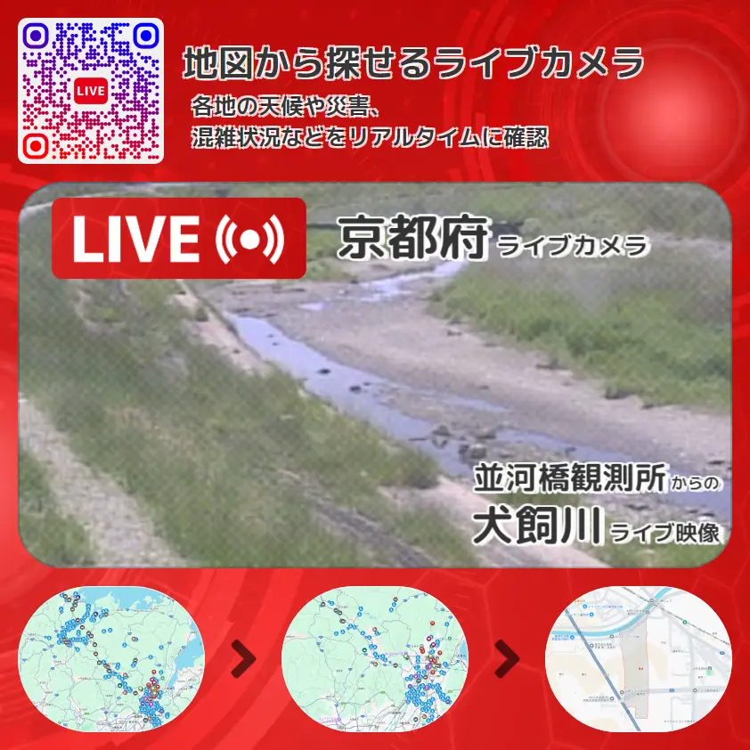 並河橋観測所(並河橋水位観測所)から、犬飼川が確認できるライブカメラです。