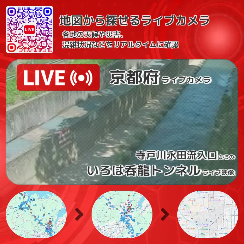 京都府 「いろは呑龍トンネル」ライブ映像(寺戸川永田流入口 設置カメラ) ライブカメラ 監視カメラ