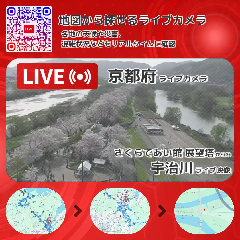 さくらであい館 展望塔から、宇治川(淀川水系)が確認できるライブカメラです。