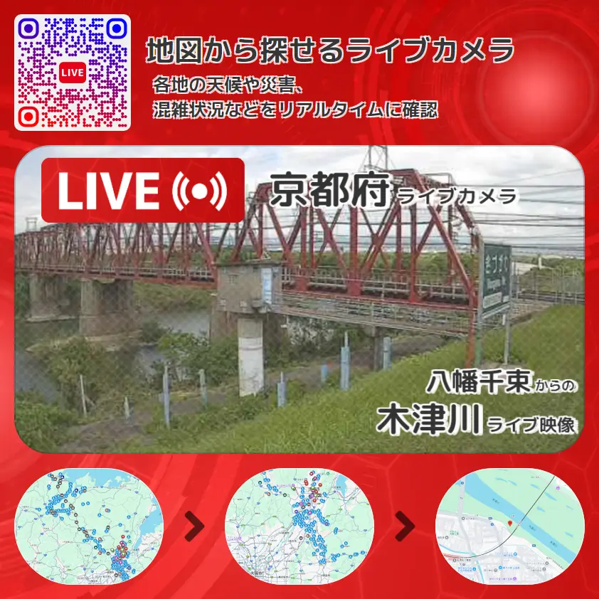 木津川の他に、京阪電気鉄道(京阪電鉄・京阪電車)京阪本線(石清水八幡宮駅~淀駅)や周辺の気象状況も併せてチェックすることが可能で、台風・大雨・地震などの災害による被害状況も把握することができます。