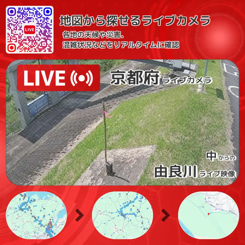 周辺の気象状況も併せてチェックすることが可能で、台風・大雨・地震などの災害による被害状況も把握することができます。