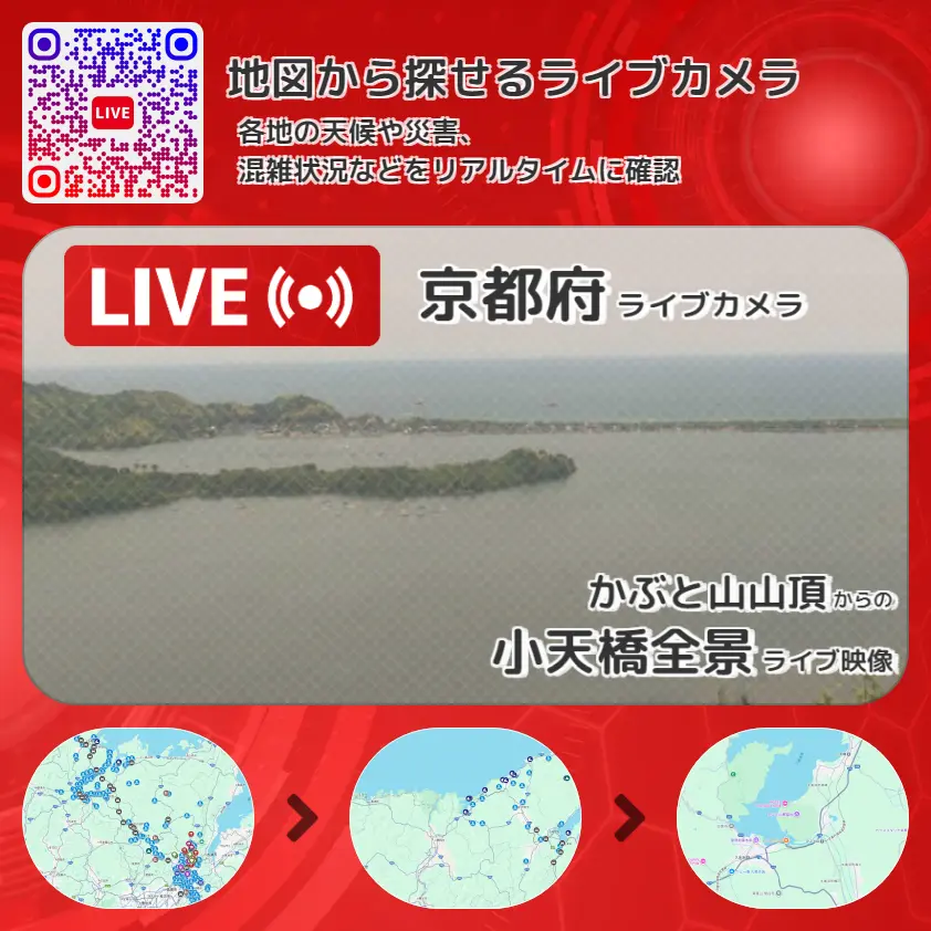 京都府 「小天橋全景」ライブ映像(かぶと山山頂 設置カメラ) ライブカメラ 監視カメラ