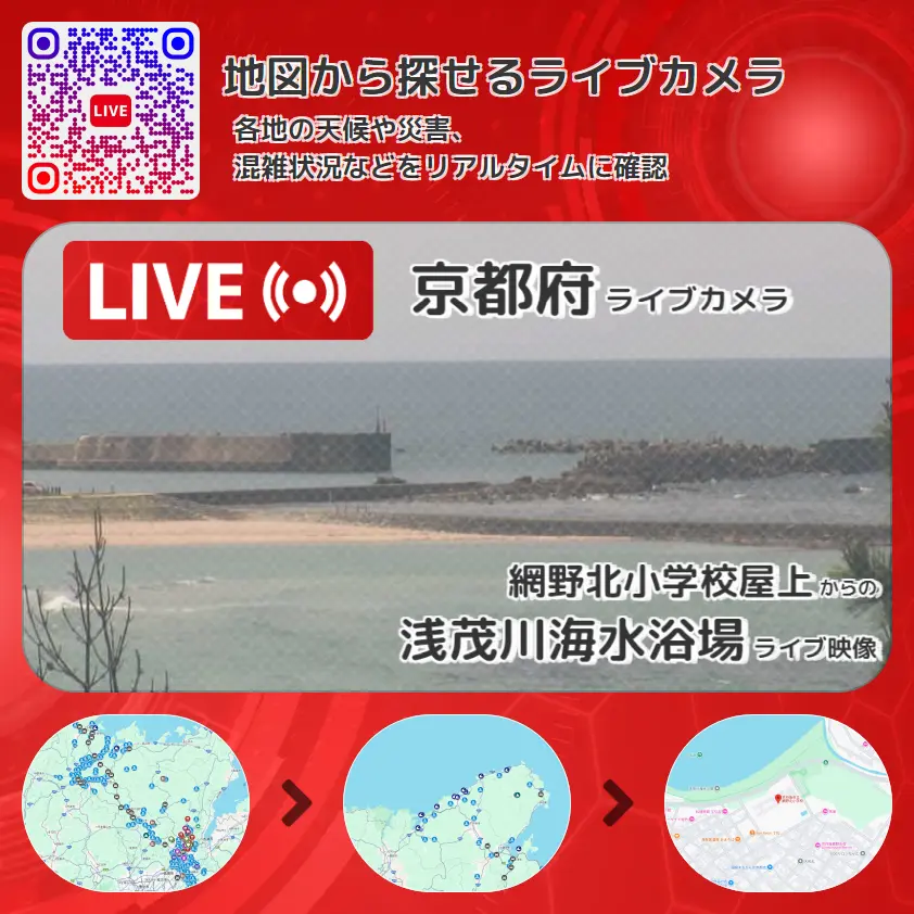 京都府 「浅茂川海水浴場」ライブ映像(網野北小学校屋上 設置カメラ) ライブカメラ 監視カメラ