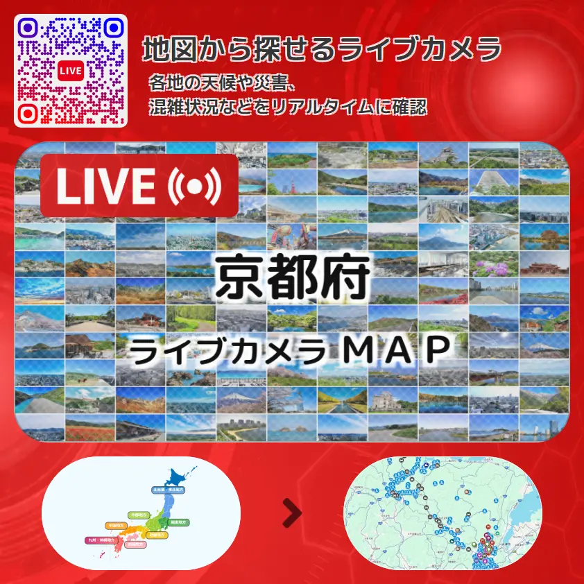 京都府のライブカメラMAP 京都府 X Facebook はてブ LINE コピー 2025.11.082025.11.09 リンク GoogleMapの地点一覧は測地系の影響により、地図上のマークが示す地点はおおよその場所になります。正確な位置は各地点の詳細ページをご確認ください。リンク