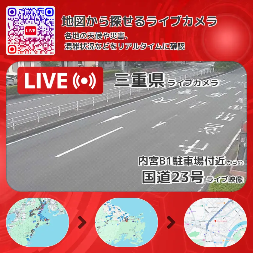 内宮B1駐車場付近(伊勢市営宇治第1駐車場)から、国道23号が確認できるライブカメラです。
