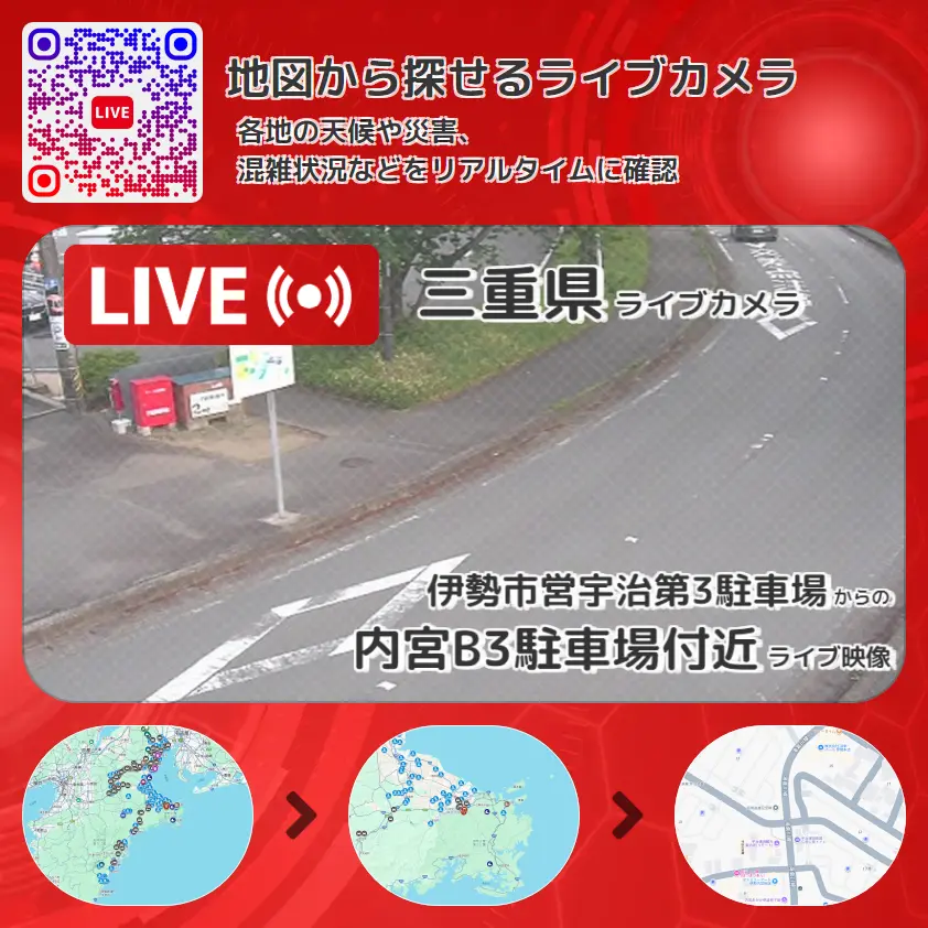 伊勢市営宇治第3駐車場(内宮B3)から、内宮B3駐車場付近が確認できるライブカメラです。
