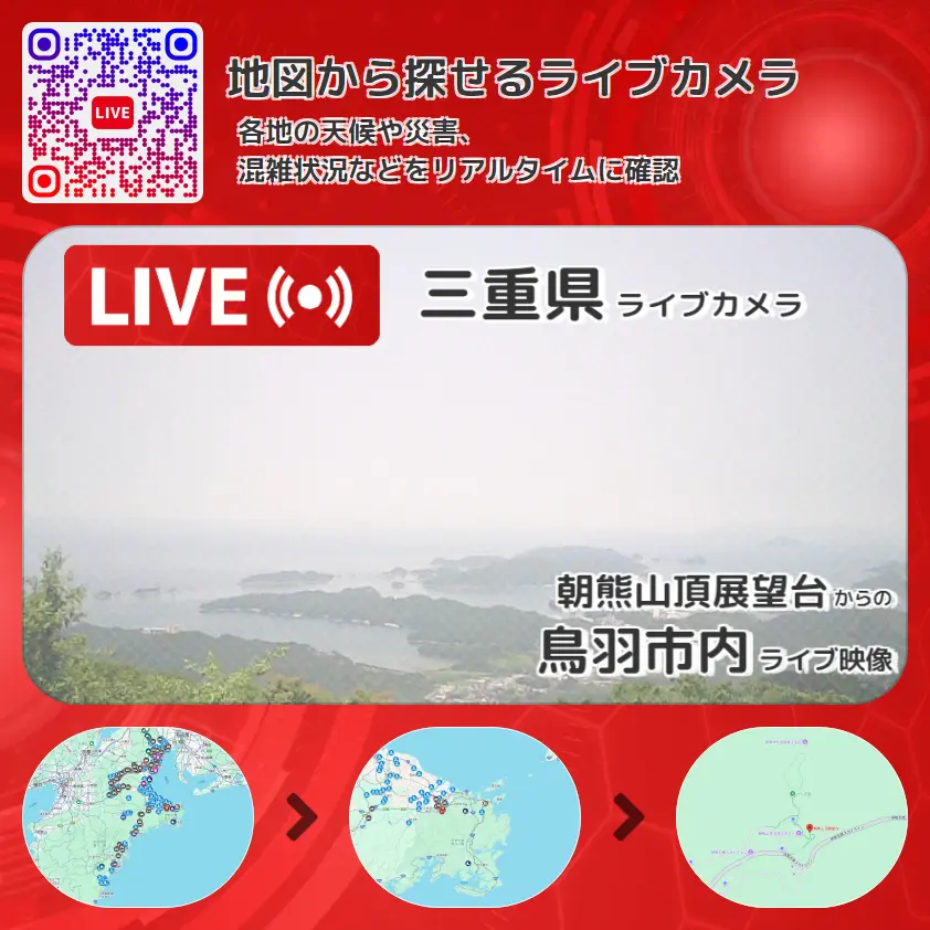 朝熊山頂展望台から、鳥羽市内が確認できるライブカメラです。
