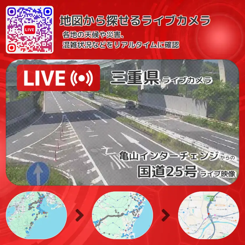 亀山インターチェンジから、国道25号(名阪国道)が確認できるライブカメラです。