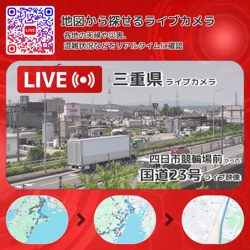 四日市競輪場前から、国道23号(名四国道)が確認できるライブカメラです。