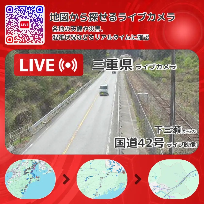 下三瀬から、国道42号(熊野街道)が確認できるライブカメラです。