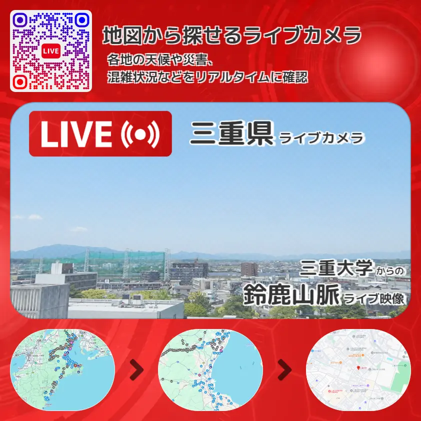 鈴鹿山脈(御在所岳・御在所山)の他に、経が峰や周辺の気象状況も併せてチェックすることが可能で、台風・大雨・地震などの災害による被害状況も把握することができます。