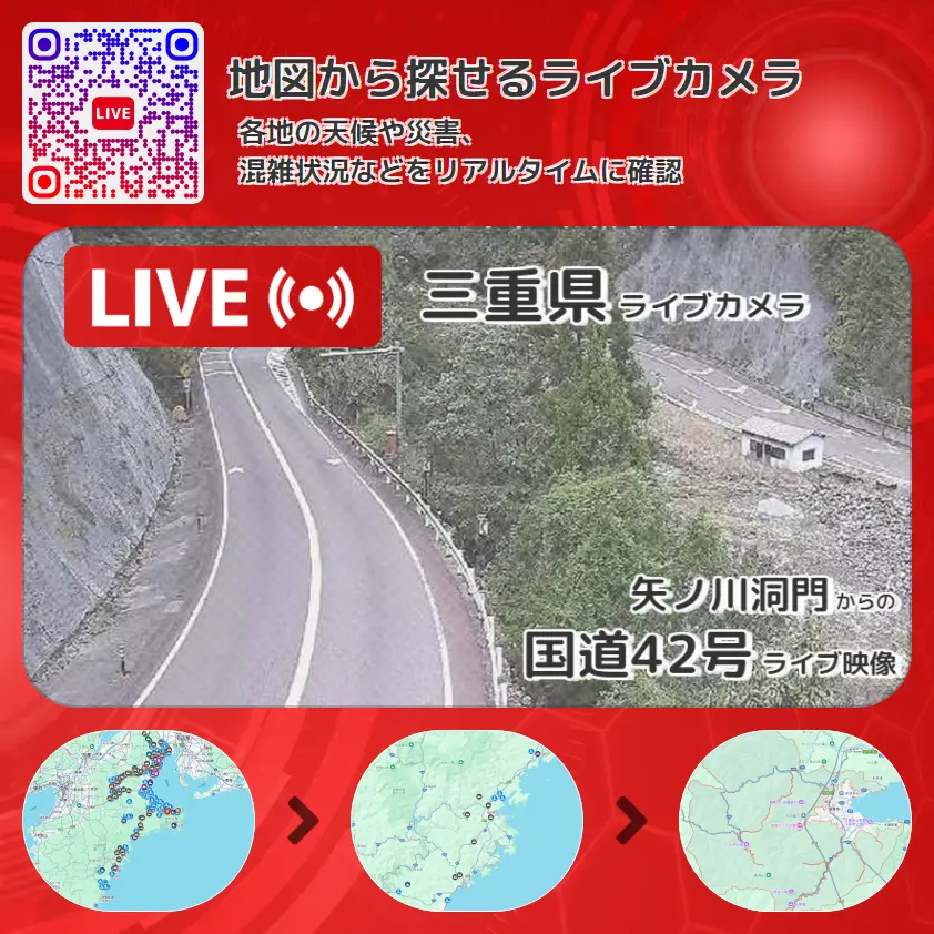 矢ノ川洞門(矢の川洞門)から、国道42号(熊野街道)が確認できるライブカメラです。