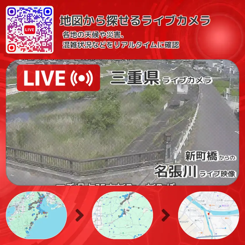 名張川の他に、新町橋や周辺の気象状況も併せてチェックすることが可能で、台風・大雨・地震などの災害による被害状況も把握することができます。