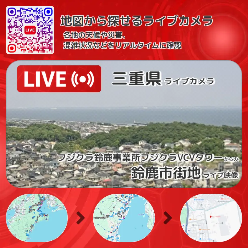 フジクラ鈴鹿事業所フジクラVCVタワーから、鈴鹿市街地が確認できるライブカメラです。