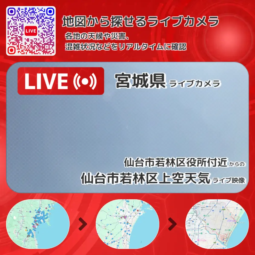 仙台市若林区役所付近から、仙台市若林区上空天気が確認できるライブカメラです。