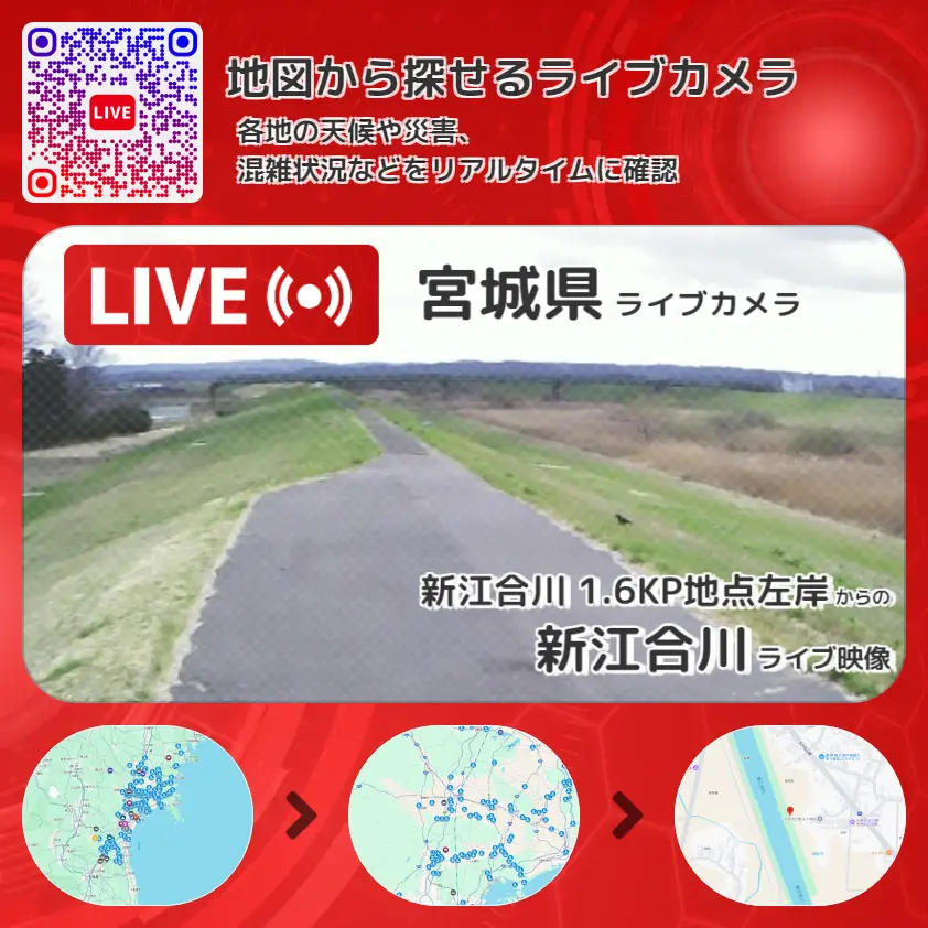新江合川 1.6KP地点左岸から、新江合川が確認できるライブカメラです。
